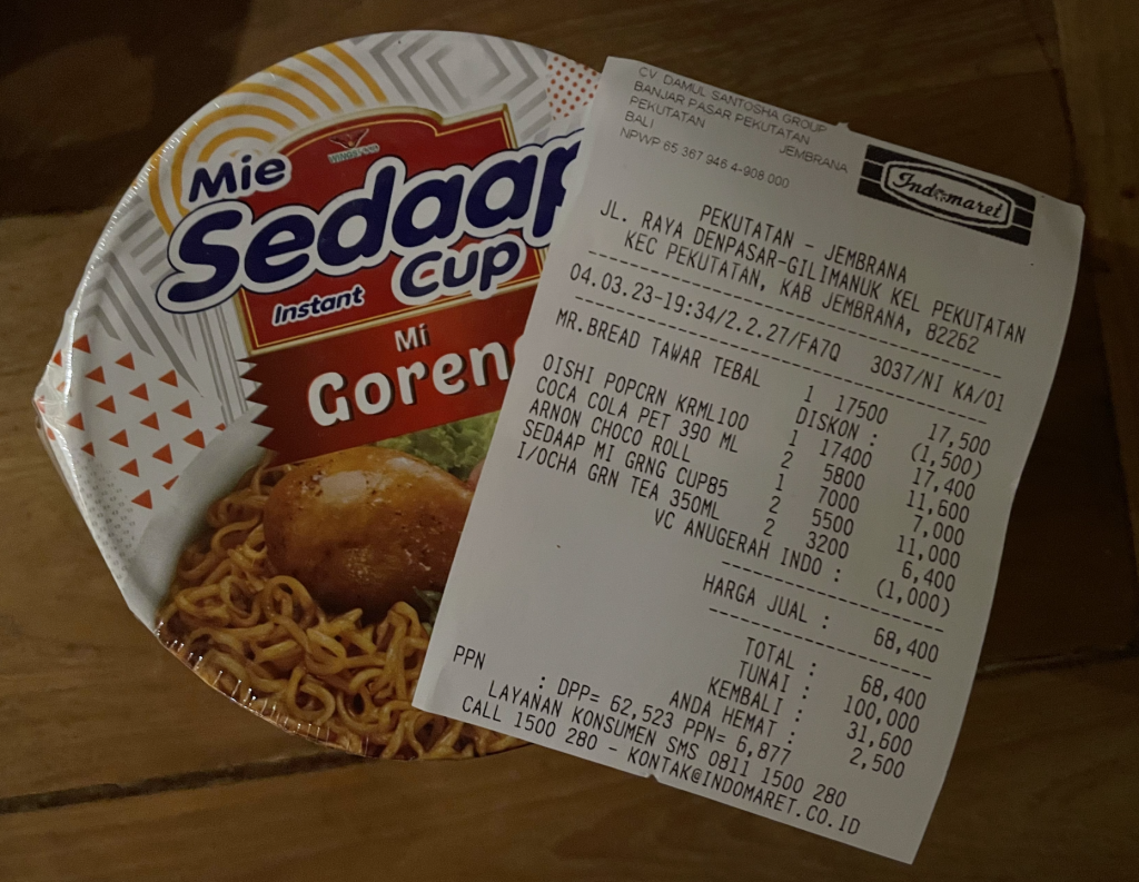 Die Straße weiter runter war ein Indomaret, der noch einmal günstiger war als unser zuerst entdeckter.