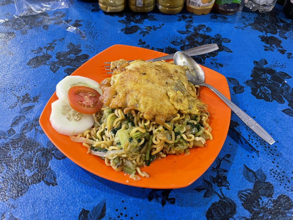 Wir haben uns für 2x Mie Goreng und 1x Nasi Goreng entschieden. Gekostet haben die drei Gerichte 30000 Rupien (1,84€). Es war gut Scharf und daher nicht so erfreulich für Julius. Er hat aber jeweils das gebratene Ei vom Teller gegessen. Wir fanden das Essen super lecker.