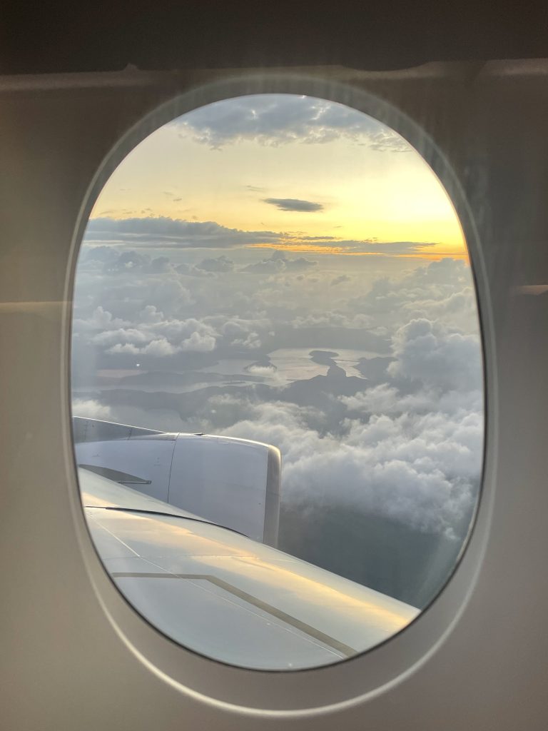 Die Sonne ging grade auf, daher konnten wir diesmal direkt aus dem Flugzeug schöne Luftaufnahmen machen.