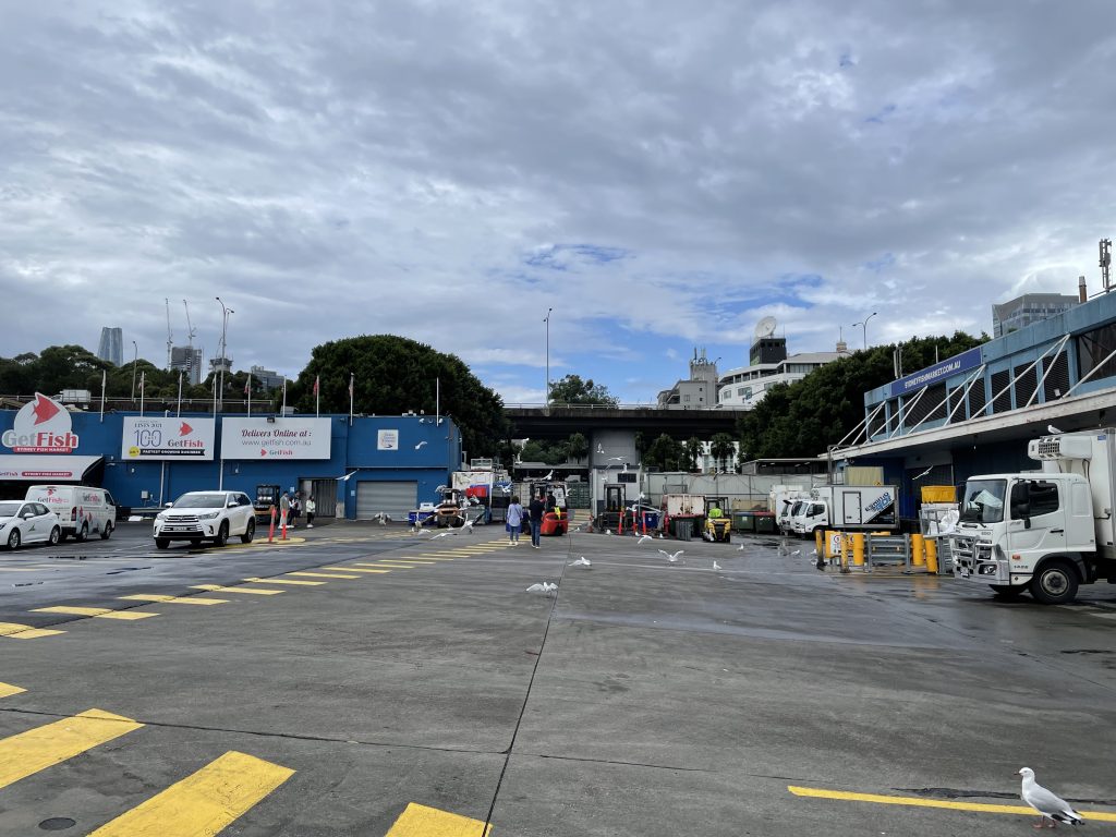 Erster Stop war der Sydney Fischmarkt. Leider war um die Uhrzeit nicht mehr wirklich was los. Aber wir konnten die Hallen und unzählige Möven beobachten.