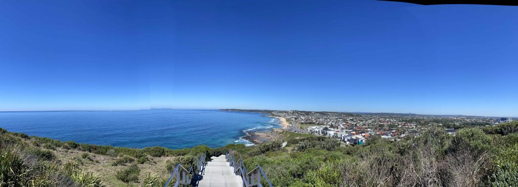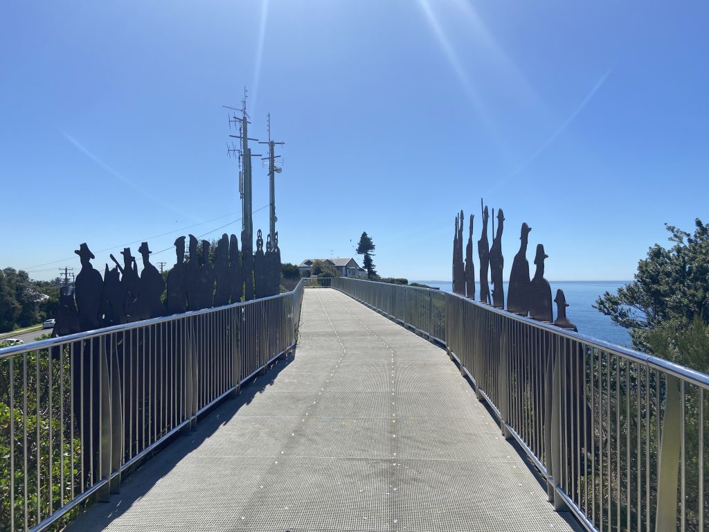 Auch heute musste der Wecker gestellt werden, das Zimmer war bis 10:00 Uhr zu räumen. Nach einem kurzen Frühstück haben wir all unser Gepäck wieder im KIA verstaut und die Schlüsselkarte abgegeben. Damit waren wir ausgecheckt. Da es gestern zu heiß war, haben wir uns heute als erstes den „Newcastle Memorial Walk“ angeschaut. Von hier hat man einen unglaublichen Blick über Newcastle und das Meer.