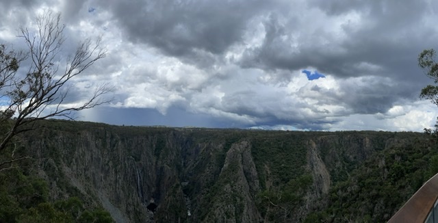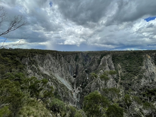 300m neben den Parkbänken lag diese riesige Felsformationen mit Wasserfall. Der Ausblick war erstaunlich und im Hintergrund hat sich sogar ein Gewitter angekündigt.