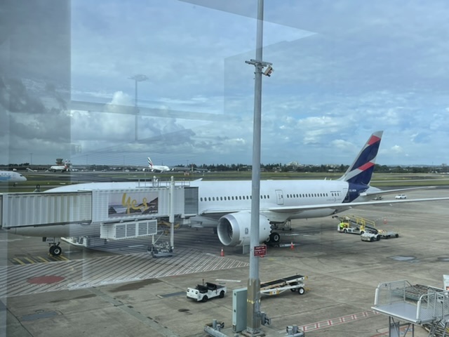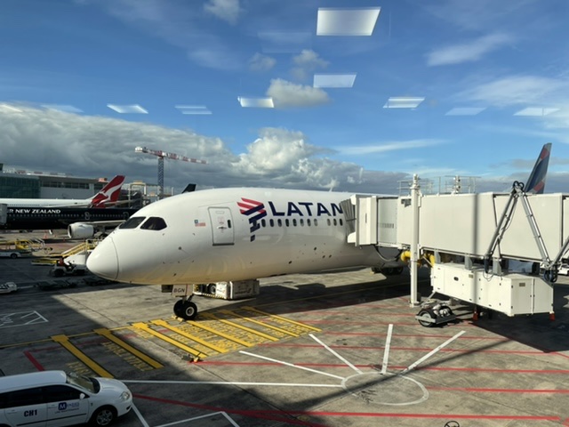 Sicherheitskontrolle und Ausreise liefen reibungslos. Geflogen wird wieder mit einer Boing 787, diesmal von Latam Airways.