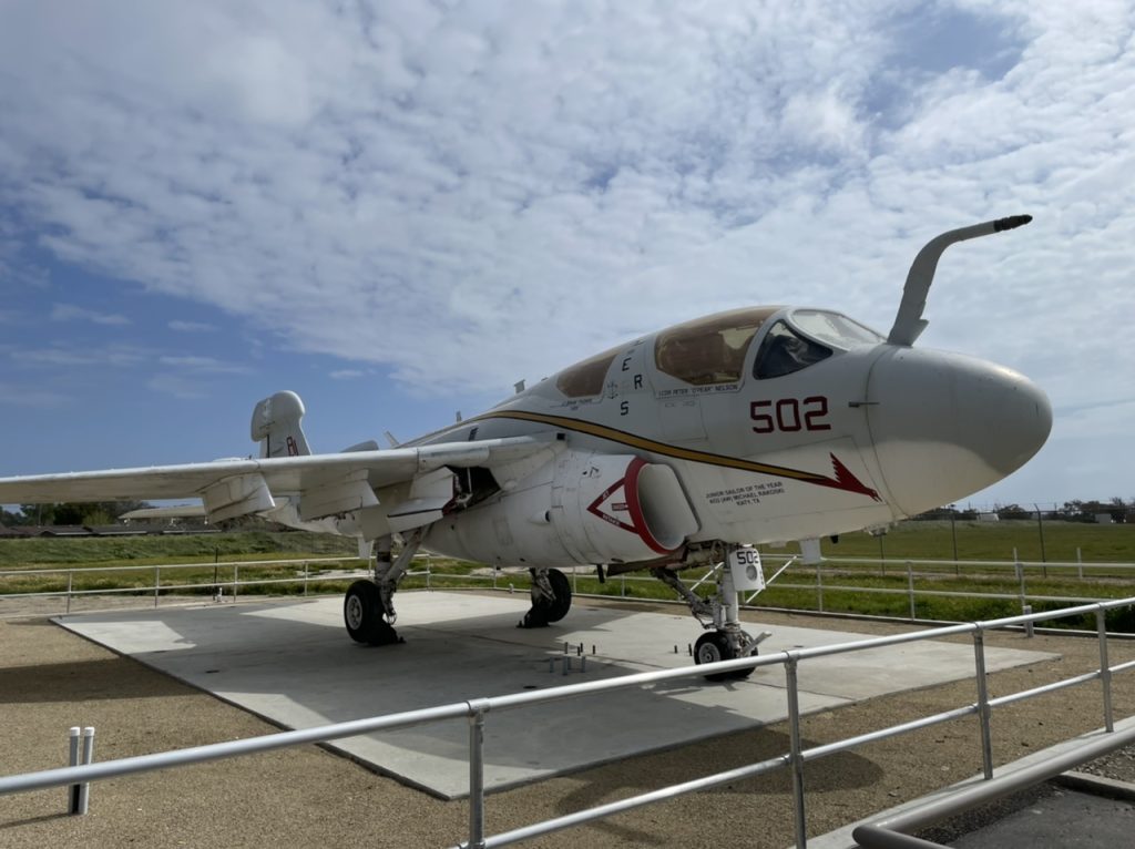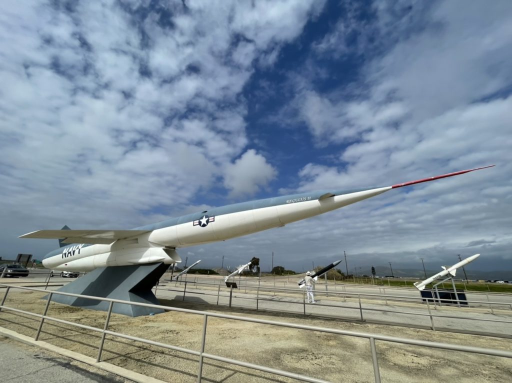 Als Nächstes wollten wir uns eine alte Eisenbahnbrücke anschauen, die direkt an der Autobahn liegt. Leider war die Ausfahrt auch durch den Regen beschädigt und wir konnten dort nicht halten. Weil Julius so gerne Flugzeuge mag haben wir als Ausweichpunkt den Point Mugu Missile Park angesteuert. Hier werden unter freiem Himmel ohne Eintritt einiger alte Flugzeuge und Raketen der US Navy ausgestellt.