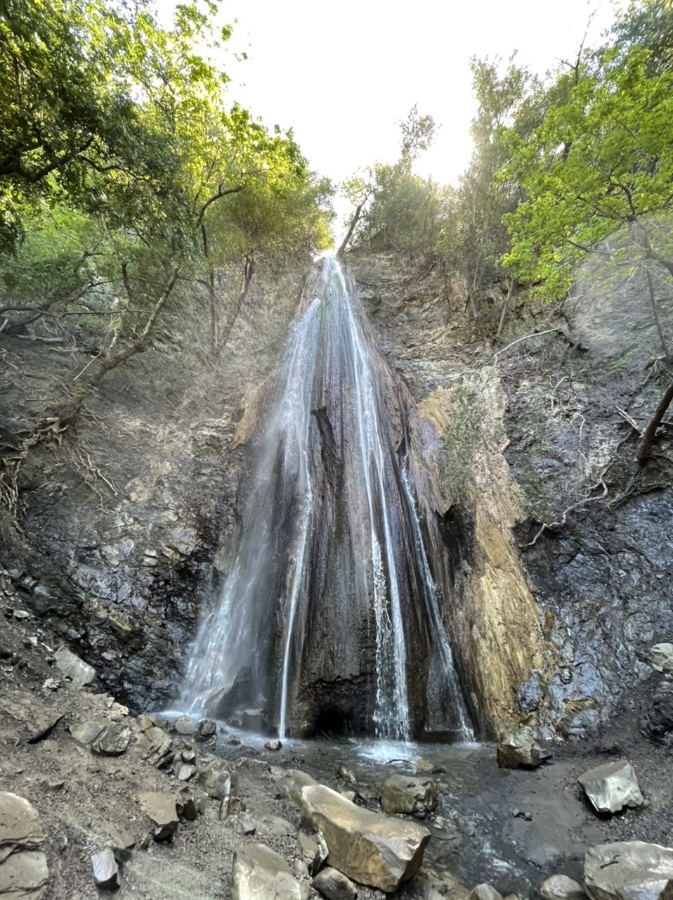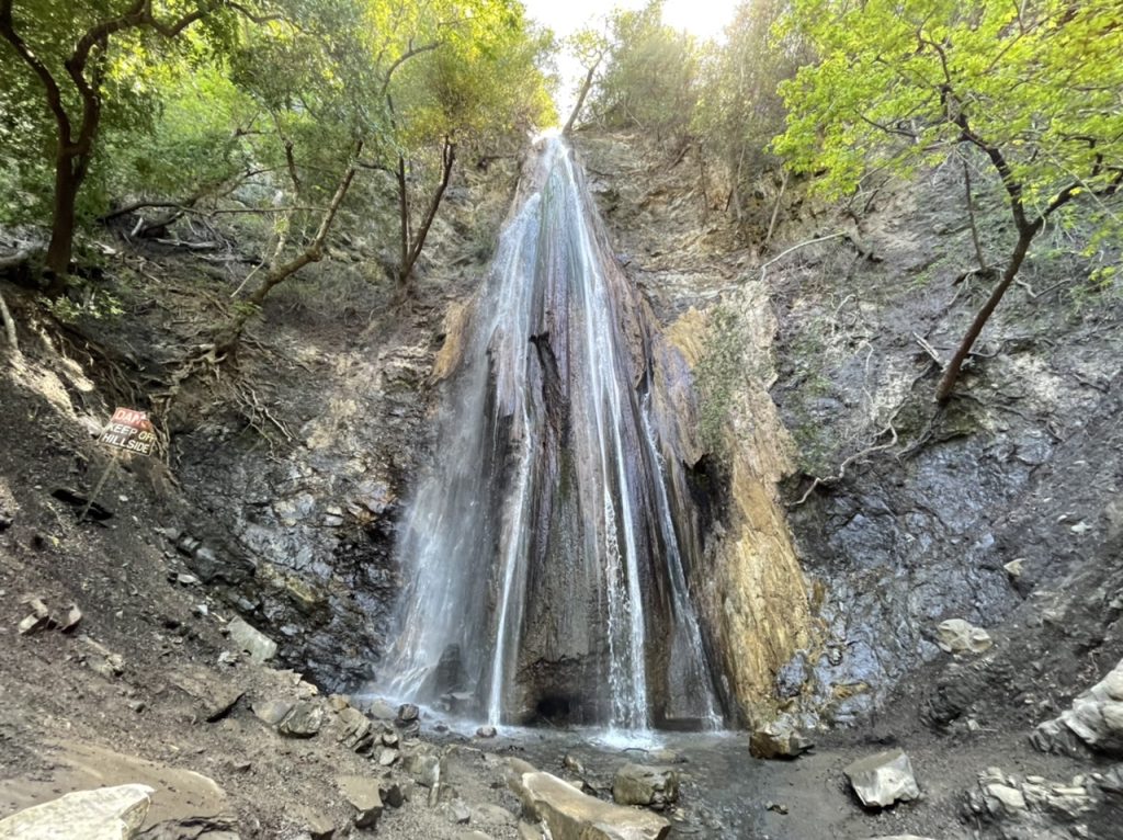 In Santa Maria wollten wir uns nichts mehr anschauen und sind daher auf direktem Weg nach Los Angeles gestartet. Auf dem Weg dorthin haben wir am Nojoqui Falls Park gehalten. Hier sollte direkt vom Parkplatz in 10 Minuten ein Wasserfall zu erreichen sein. Wir haben auf dem Parkplatz gehalten und sind Richtung Wasserfall gelaufen. Es war recht viel los und viele Leute hatten das gleiche Ziel.