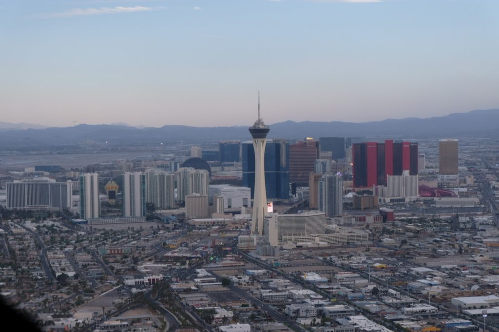 Wir sind in circa 15 Minuten über Las Vegas geflogen. Unser Ziel war der Red Rock, auf dem wir dann auch gelandet sind.