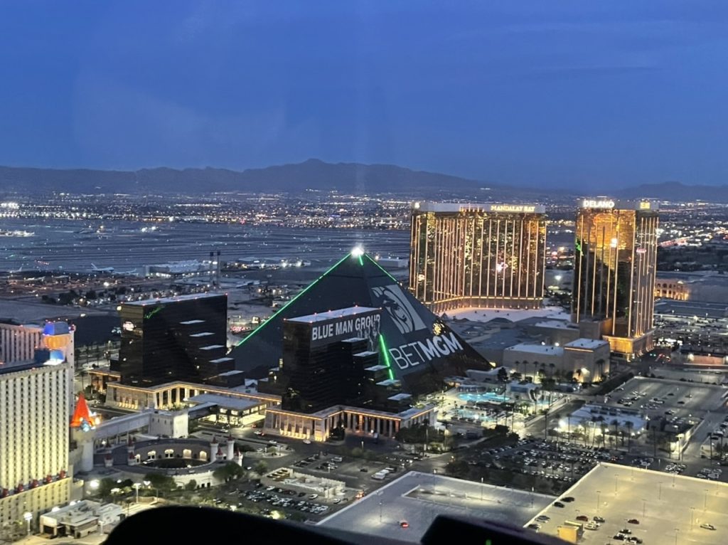 Wir hatten für heute Abend ein Helikopter Flug über Las Vegas gebucht. Eigentlich sollte der Flug zum Grand Canyon gehen, das hat aber zeitlich nicht mehr hingehauen. Nicht ganz pünktlich wurden wir circa 17:30 Uhr von einem Bus abgeholt und zum Flughafen gefahren.