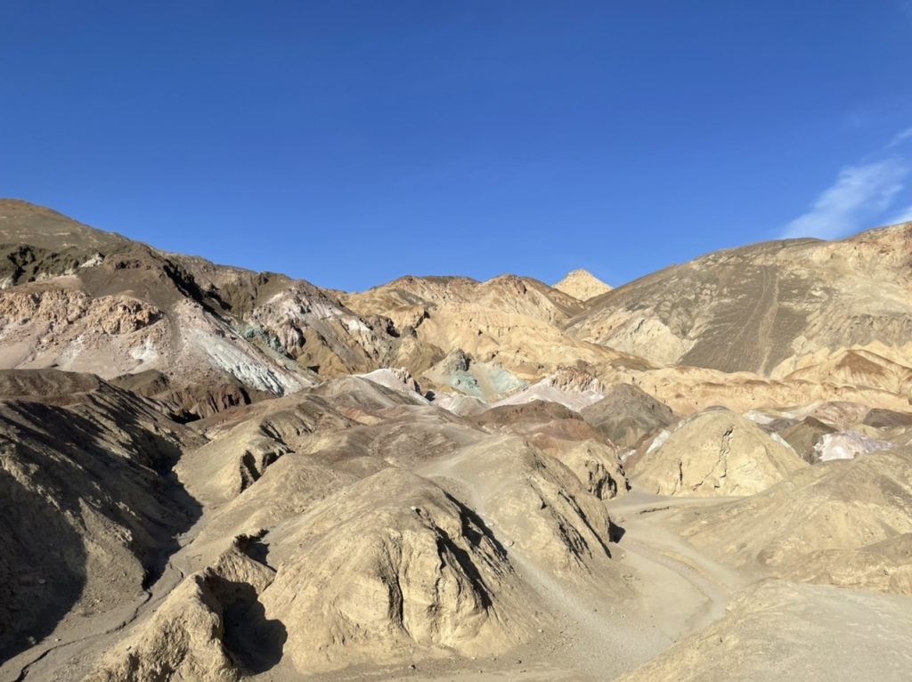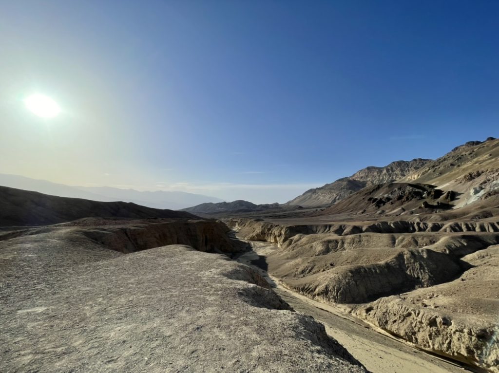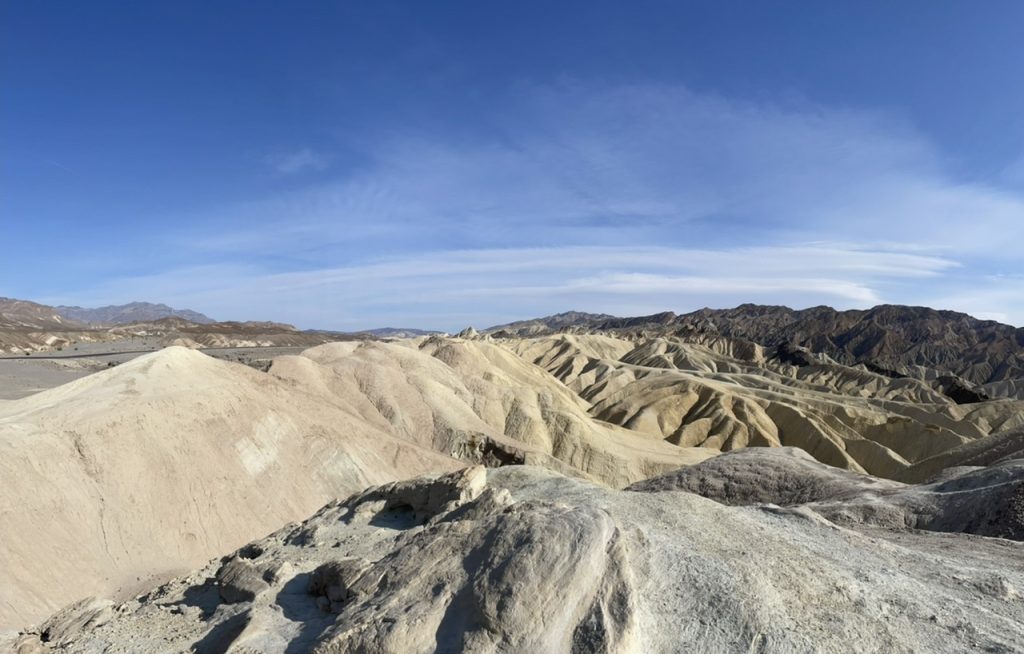Der erste Punkt den wir im Park angefahren haben war der Zabriskie Point. Eine alte Borax Mine. Es war unglaublich windig aber die Aussicht war grandios.