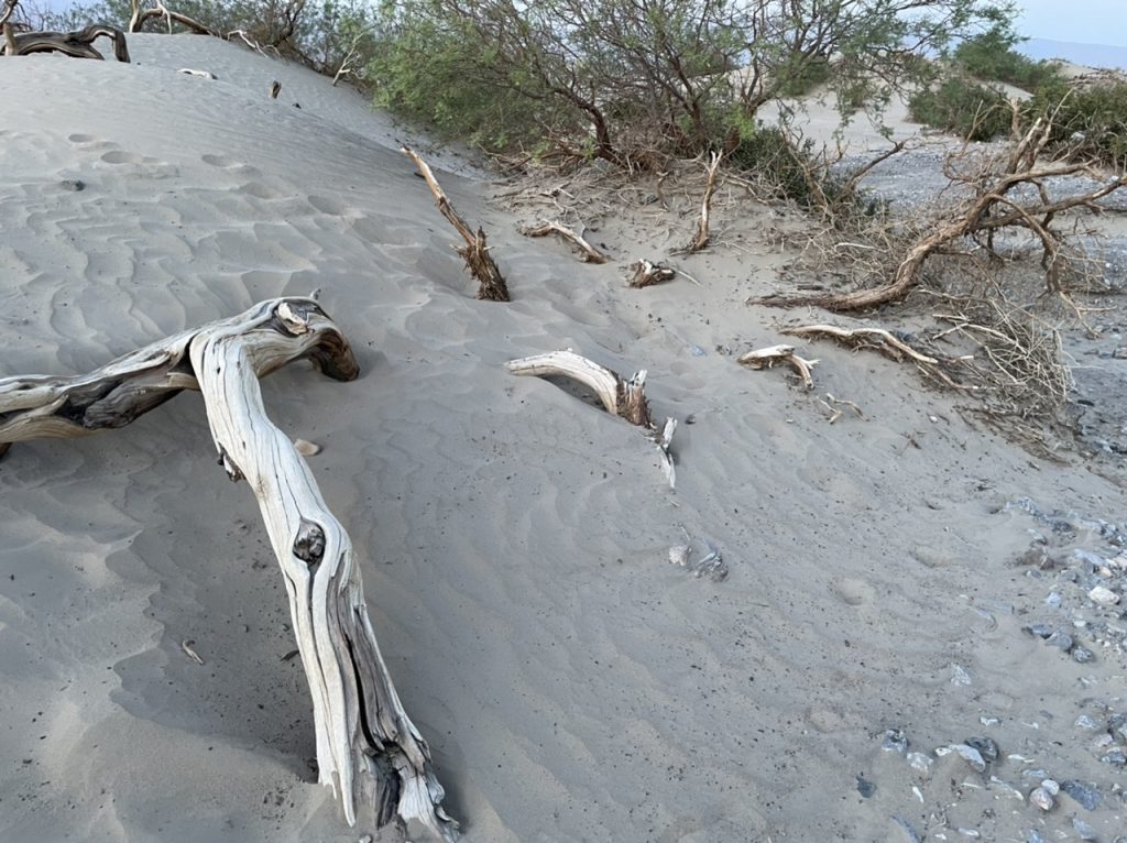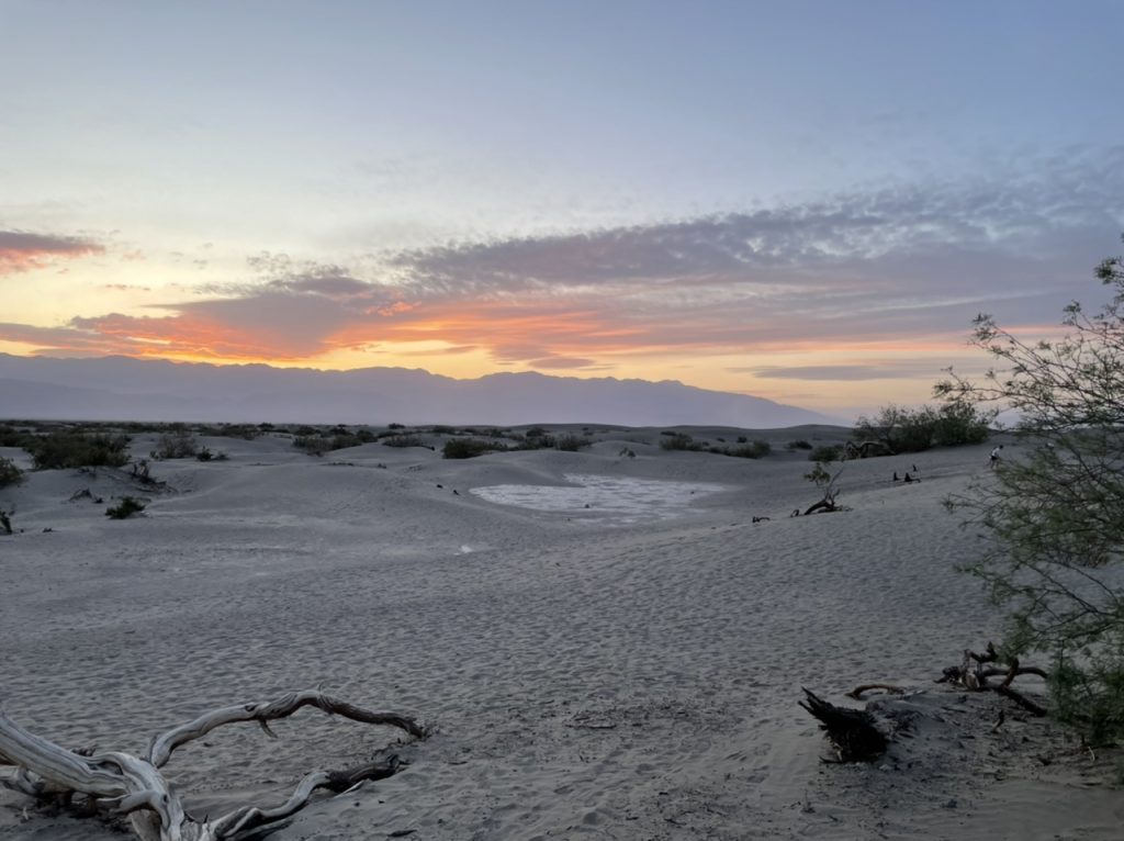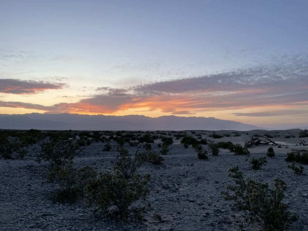 Da wir erst gegen 16:00 Uhr im Death Valley angekommen waren wurde es bereits recht spät. Erst kurz nach 18:00 Uhr haben wir BadWater verlassen. Wir hatten noch ein Ziel bevor wir den Nationalpark verlassen wollten. Die Sanddünen der Mesquite Ebene. Die Dämmerung setzte langsam ein und im Tal wurde es immer dunkler. Kurz nach Sonnenuntergang sind wir an den Dünen angekommen.