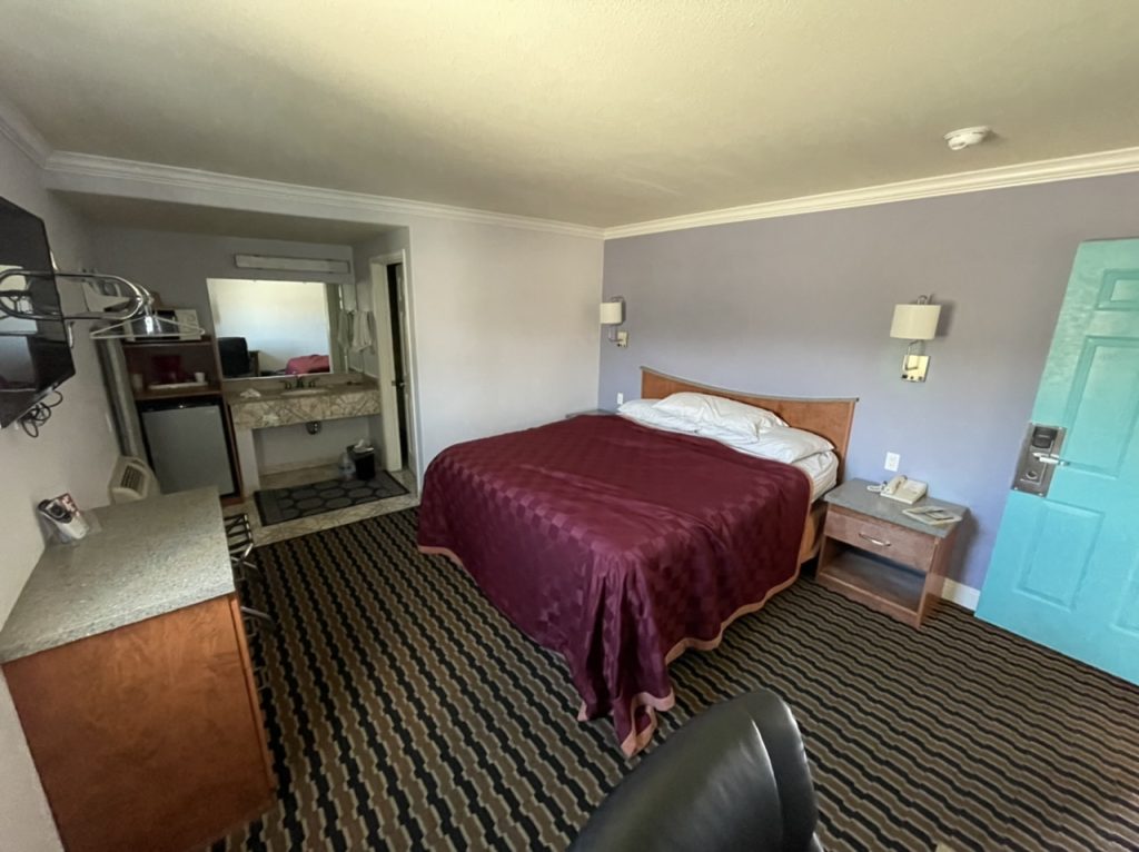Plötzlich war überall nur noch feiner weißer Sand. Sehr viel Zeit konnten wir hier nicht mehr verbringen. Es wurde zu dunkel und wir mussten noch zum Hotel kommen. In stockdunklen Nacht sind wir dann durch das Death Valley gefahren. Es wurde immer kälter und wir haben auch einmal angehalten, um bei absoluter Dunkelheit die Sterne anzuschauen. Erst um 21:00 Uhr waren wir im Hotel angekommen . Das Trails Motel in Lone Pine war bereits gut belegt und wir scheinen die letzten Gäste gewesen zu sein, die gefehlt haben.