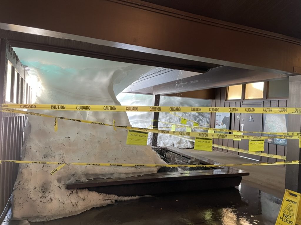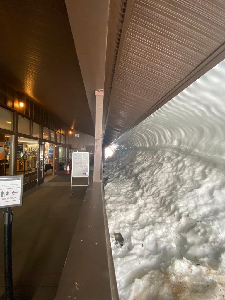 Wir haben uns dann auch dort im Besucherzentrum informiert, was man alles machen konnte. Viel war noch nicht offen, da alle Wege noch immer Meter hoch mit Schnee bedeckt waren. Selbst das Besucherzentrum lag noch unter einer sehr hohen Schneedecke. Man hat sich wie in einer Eishöhle gefühlt.
