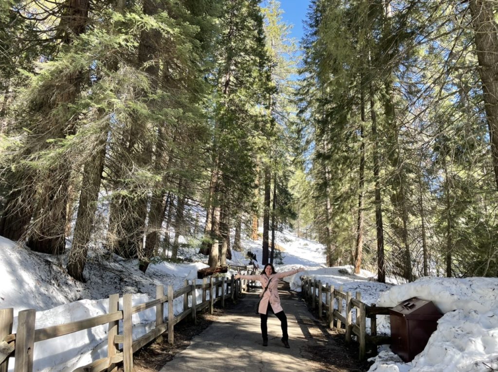 Es gab aber einen Weg den man laufen konnte. Den circa 1/2 Meile Langen General Grant Tree Walk. Und da waren sie endlich, unsere gigantischen Bäume. In dieser unendlichen Schneelandschaft noch viel mystischer als wir uns vorgestellt hatten.