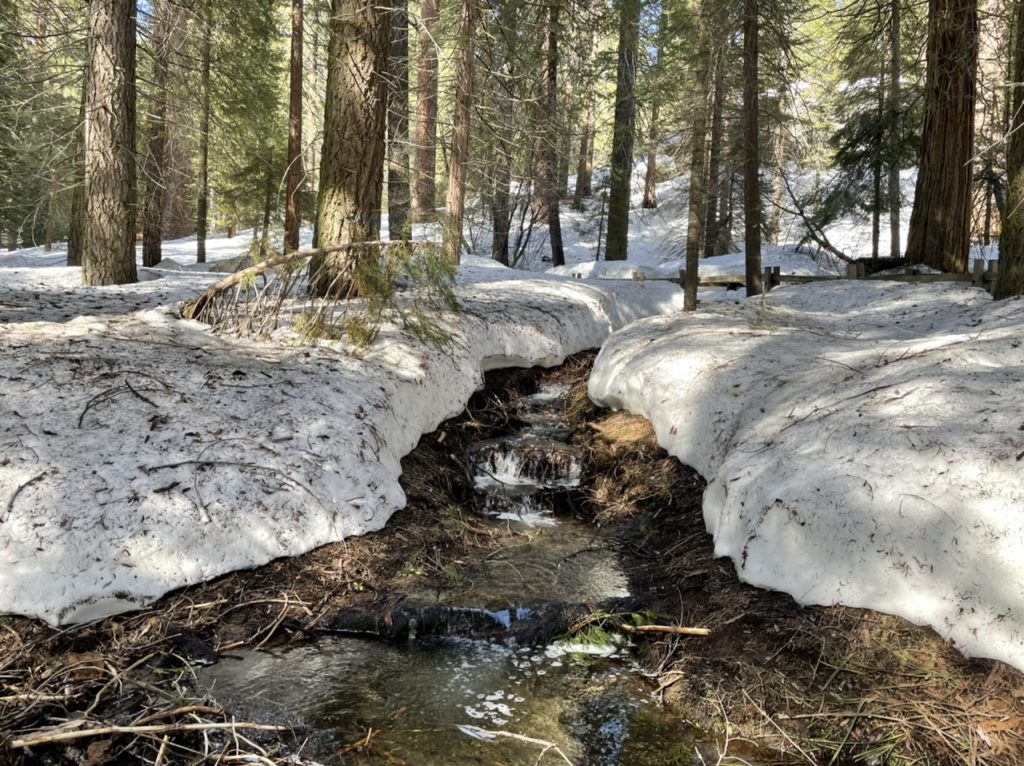 Durch die Sonne ist der Schnee überall langsam geschmolzen. Es haben sich richtig kleine Flüsse aus Schmelzwasser gebildet.