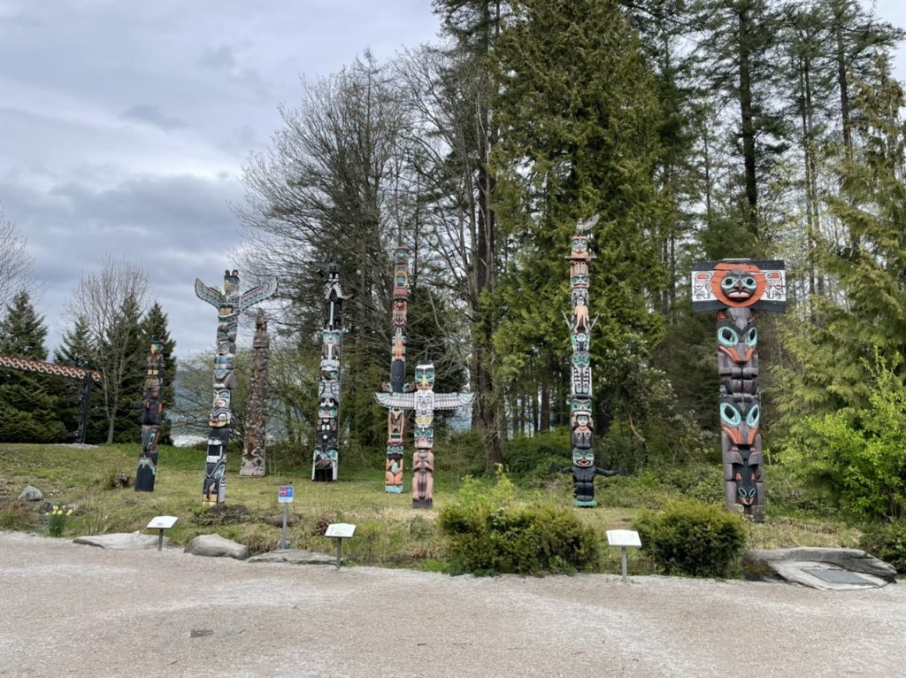 Die Totempfähle im Park wurden von verschiedenen Künstlern aus allen Regionen Kanadas erstellt und hier ausgestellt. Sie stehen dort schon seit sehr vielen Jahren.