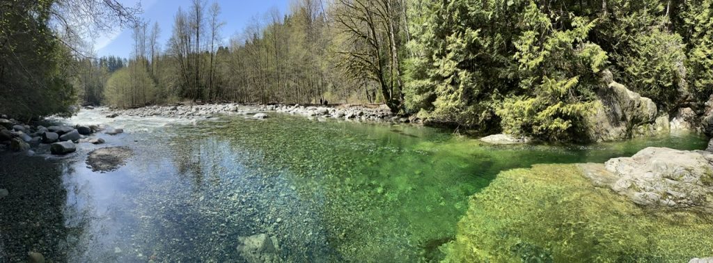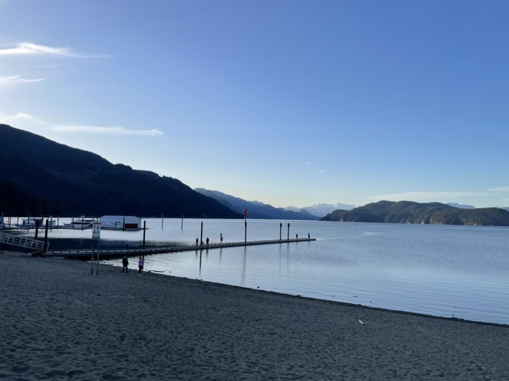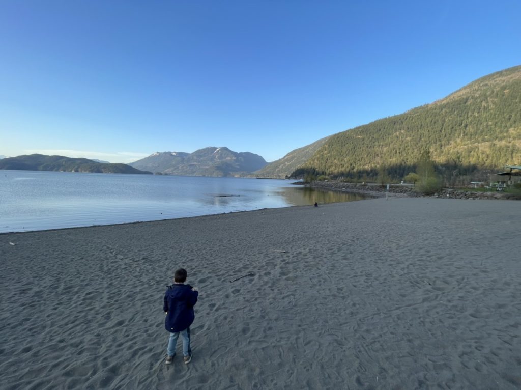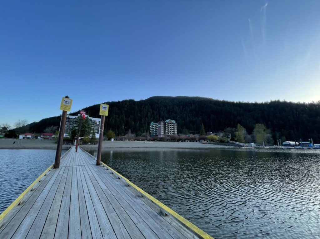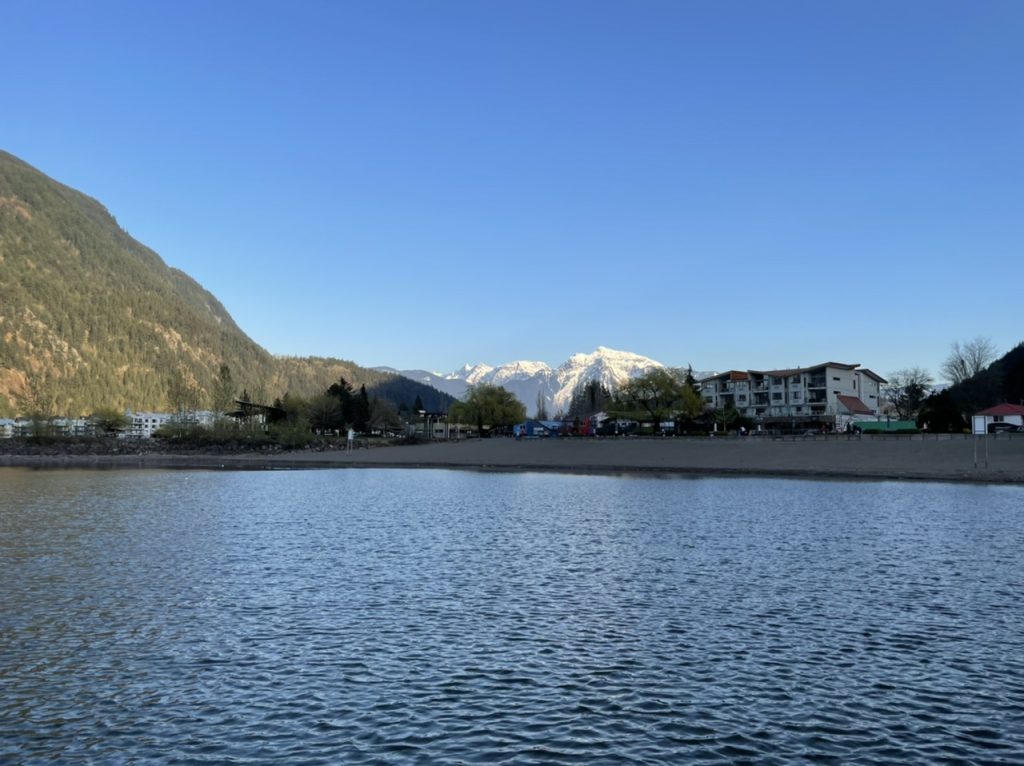 Da wir nicht wussten wie schnell wir noch einen finden, haben wir in Chilliwack noch bei einem Walmart angehalten. Von dort aus haben wir noch einen Zwischenstopp in Harrison Hot Springs eingelegt. Von dort hatte man einen wunderbaren Ausblick auf einen Bergsee.