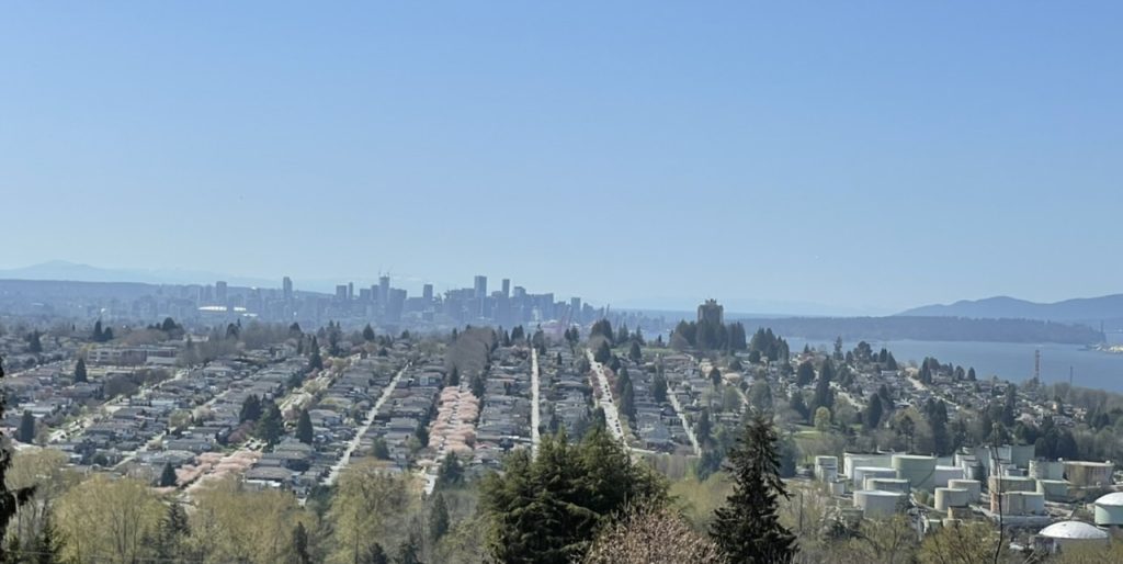 Schon standen wir wieder mitten im Wald. Wir sind dann auf der anderen Seite des Waldes zurück zur Hängebrücke gelaufen. Am Parkplatz haben wir erst mal eins unsere Brote gegessen und sind dann weitergefahren zu einem Spielplatz (Confederation Park Play Area) damit Juli sich noch ein wenig austoben konnte. Der Spielplatz war nur wenige Minuten vom Capitol Hill Reservoir Park entfernt. Von hier hat man einen unglaublich weiten Ausblick auf die Stadt.