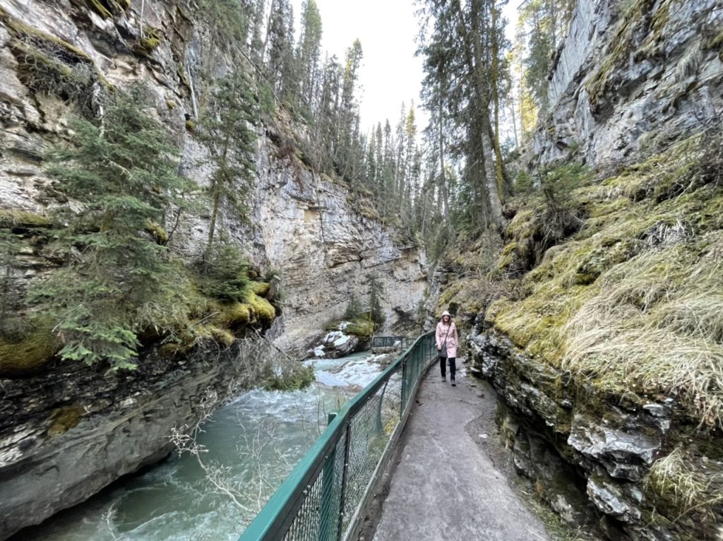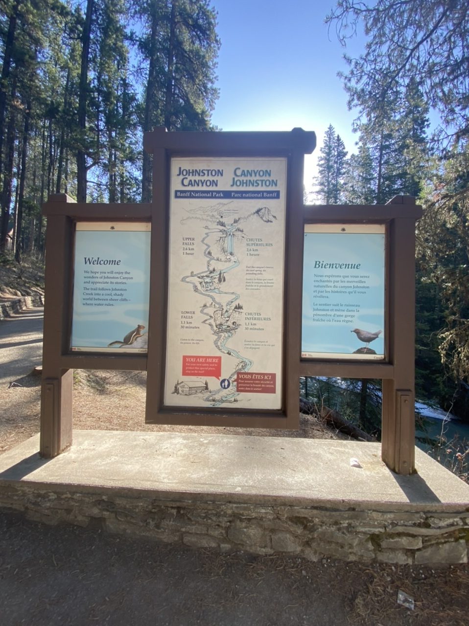 Heute Morgen hat der Wecker wieder um 7:00 Uhr geklingelt. Nachdem es gestern so gut funktioniert hat, wollten wir natürlich auch wieder so früh raus. Koffer packen Brote schmieren alles war gegen 8:00 Uhr erledigt. So dass wir bereits 8:15 Uhr im Auto saßen Richtung Johnston Canyon. Das soll ein top Spot hier sein und wird im Laufe des Tages dementsprechend voll. Nur 30 Minuten Autofahrt lang vor uns, so dass wir bereits 8:45 Uhr ankamen. Wie erhofft waren vor uns erst fünf andere Autos vor Ort. Wir haben unsere Wanderstiefel angezogen und sind los gestopft.