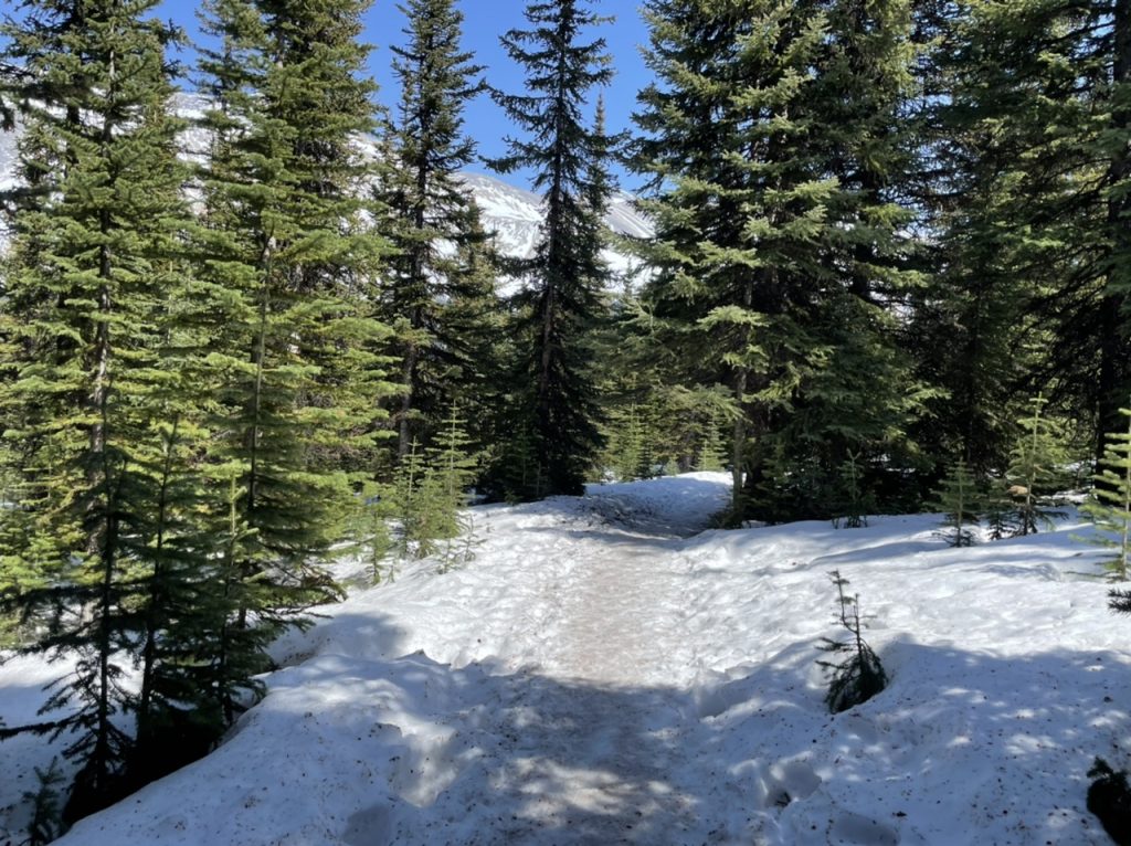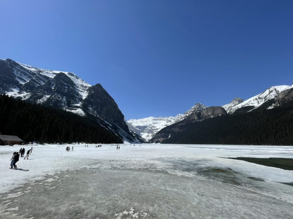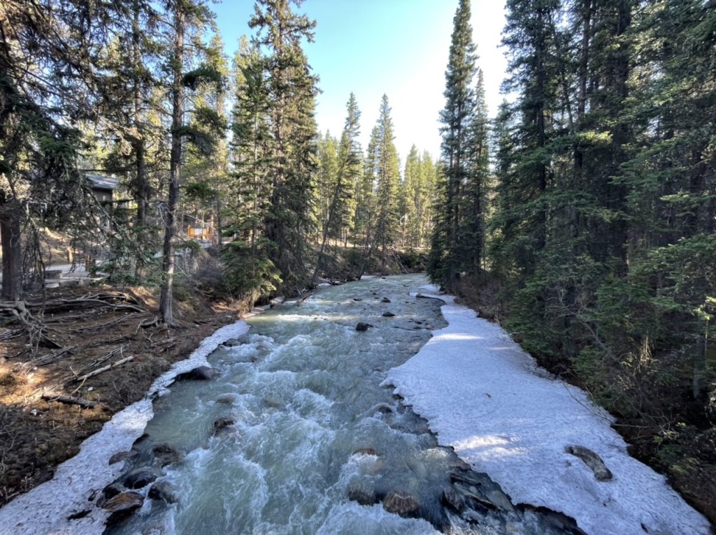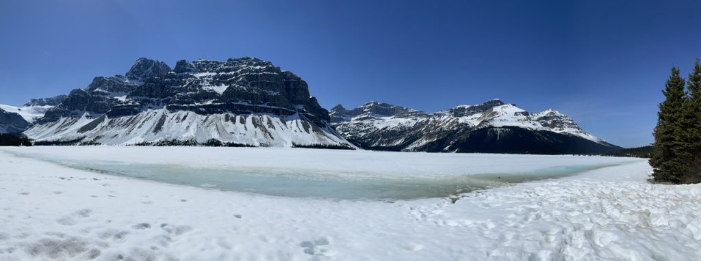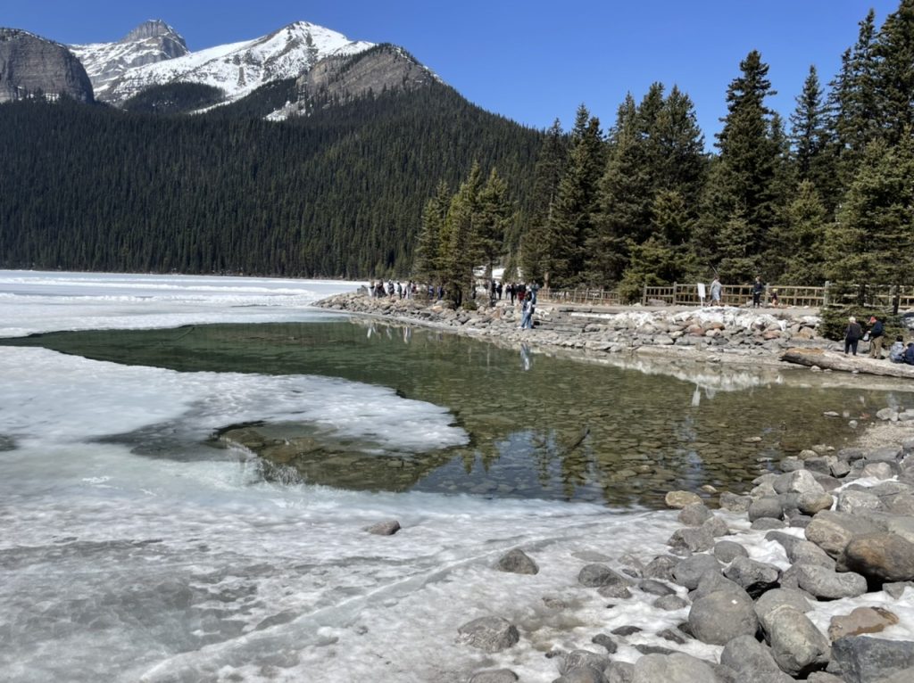 Ein kleiner Teil des Sees war auch schon wieder komplett frei von Eis. Wir wollten dann eigentlich noch beim Moraine Lake Vorbeischauen. Leider war hier der Weg wieder versperrt und wir kamen nicht weiter. Hier geht es erst ab Juni los. Wir haben uns daher entschieden den Weg nach Jasper einzuschlagen. Hier ging es 250 km quer durch zwei Nationalparks. Mal sehen was wir hier noch finden.