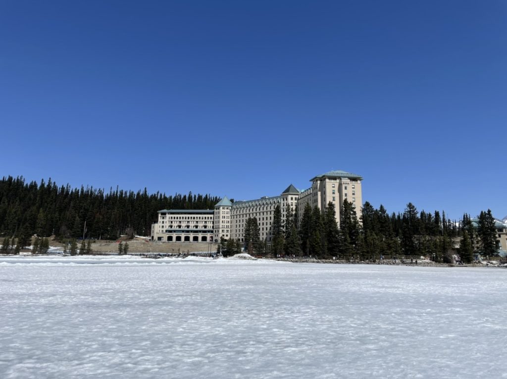 Man konnte vom Eis auch sehr gut das Fairmont Château Lake Louise ansehen.