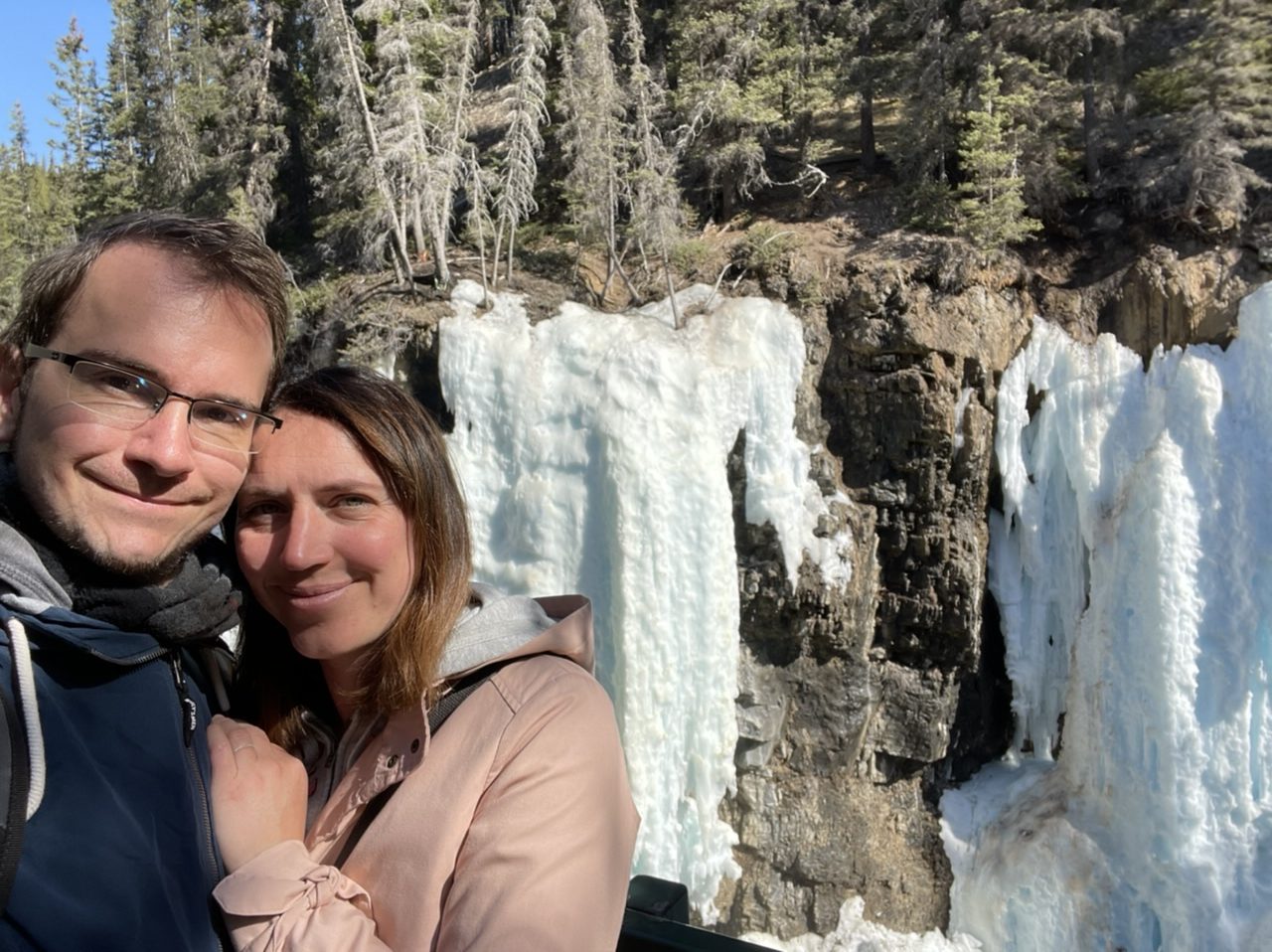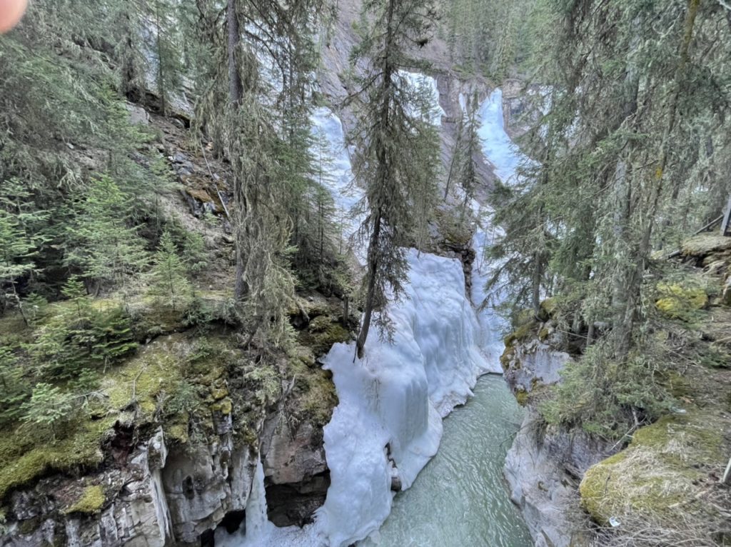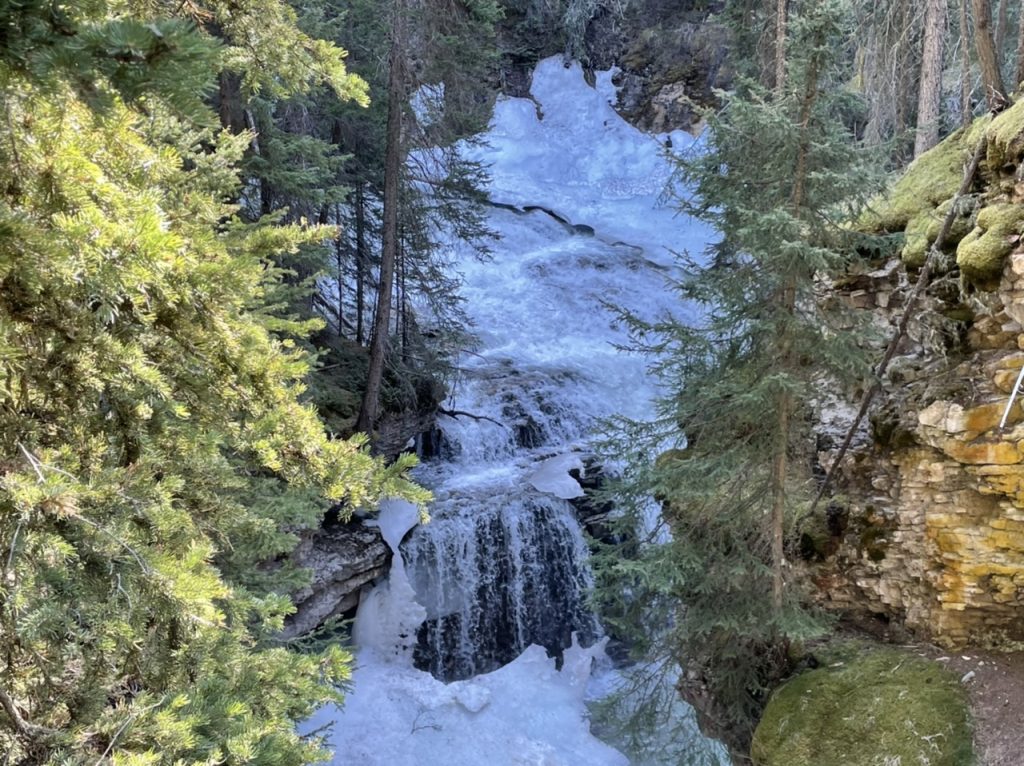 Die großen Wasserfälle (Johnston Canyon, Upper Falls) waren wirklich beeindruckend, da sich noch eine dicke Eiskruste darüber befand.