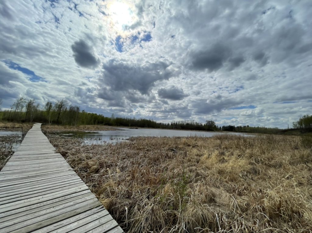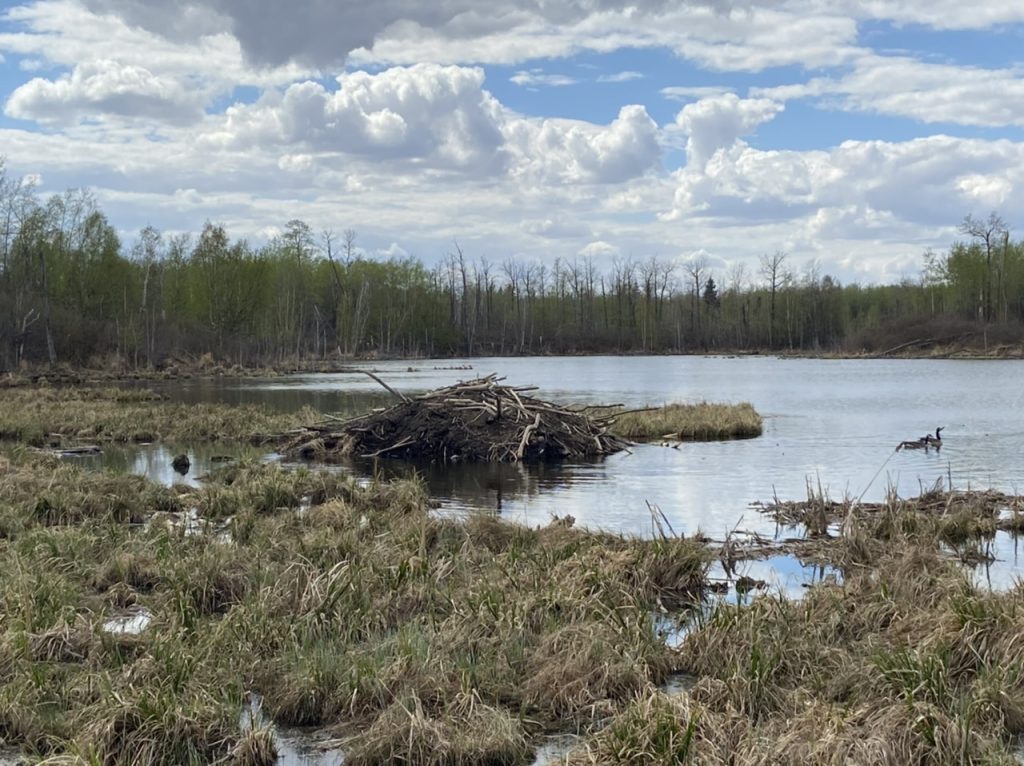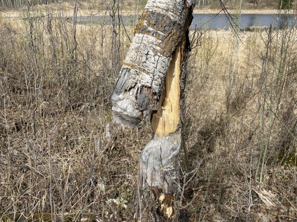 Nachdem wir endlich Bisons gesehen hatten, waren wir wieder gut gelaunt und haben uns noch für einen Wanderweg entschieden. Wir dachten wenn wir uns für einen Weg etwas abseits entscheiden, sehen wir vielleicht sogar noch ein paar Elche. Es wurde der Amisk Wuche Trail. Dieser 3 km langen Rundwanderweg war recht abgelegen und man Hatte die Chance Bieber zu sehen.