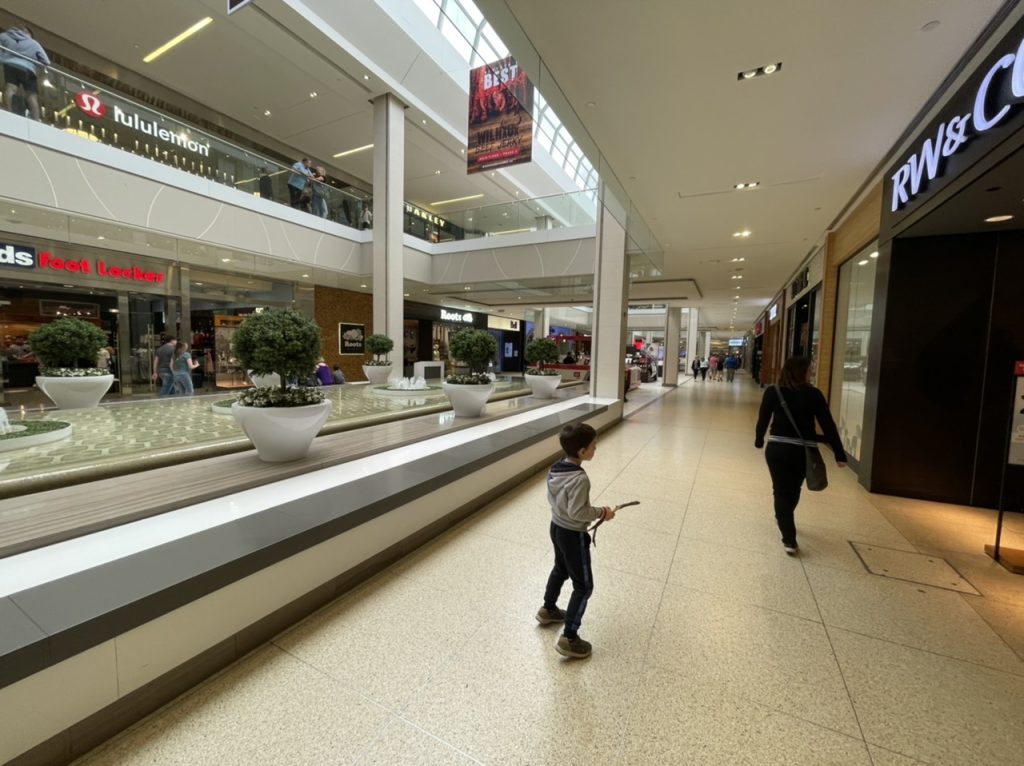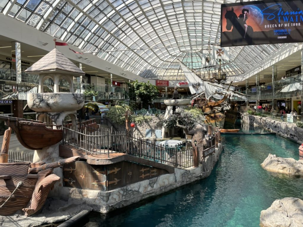 Wir haben geschaut ob Feuer unseren Weg versperren oder ob wir einfach planen können. alles war okay, also konnten wir ganz normal den Tag planen. Hier in Edmonton gibt es ein riesengroßes Einkaufszentrum auf 500 m². Es gibt unzählige Geschäfte, eine Eishockeybahn und sogar ein indoor Vergnügungspark.