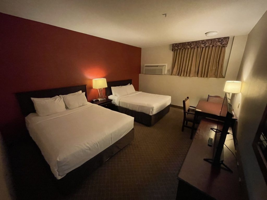 Unser Hotel heißt heute „Comfort Inn & Suites Airport South“. Das Zimmer wirkt etwas altbacken und hat diesmal leider weder Mikrowelle noch Kühlschrank. Das ist das erste Mal auf dieser Reise dass wir kein Kühlschrank haben. Dafür hat das Hotel aber einen großen Pool mit riesiger Rutsche. Es war kurz nach 21:00 Uhr als wir im Hotel angekommen sind. Heute haben wir nicht mehr lange gemacht und waren kurz vor zehn alle im Bett verschwunden.