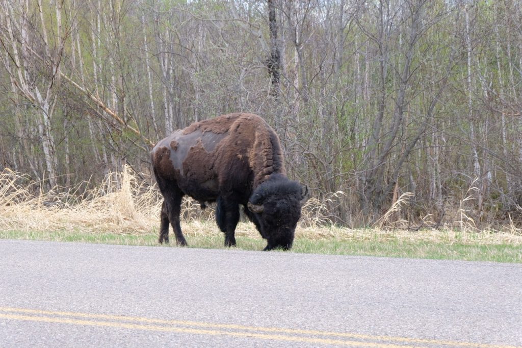 In diesem Einkaufszentrum hätte man locker eine Woche Urlaub machen können. Aber so viel Zeit hatten wir natürlich nicht. Wir haben noch ein Eis gegessen und haben uns dann auf dem Weg zu einem neuen Nationalpark gemacht. In diesem kleinsten Nationalpark Kanadas, der sogar komplett umzäunt ist, soll es wilde Bisons Und Elche geben. Natürlich gilt auch hier unser Pass und wir konnten einfach rein fahren.