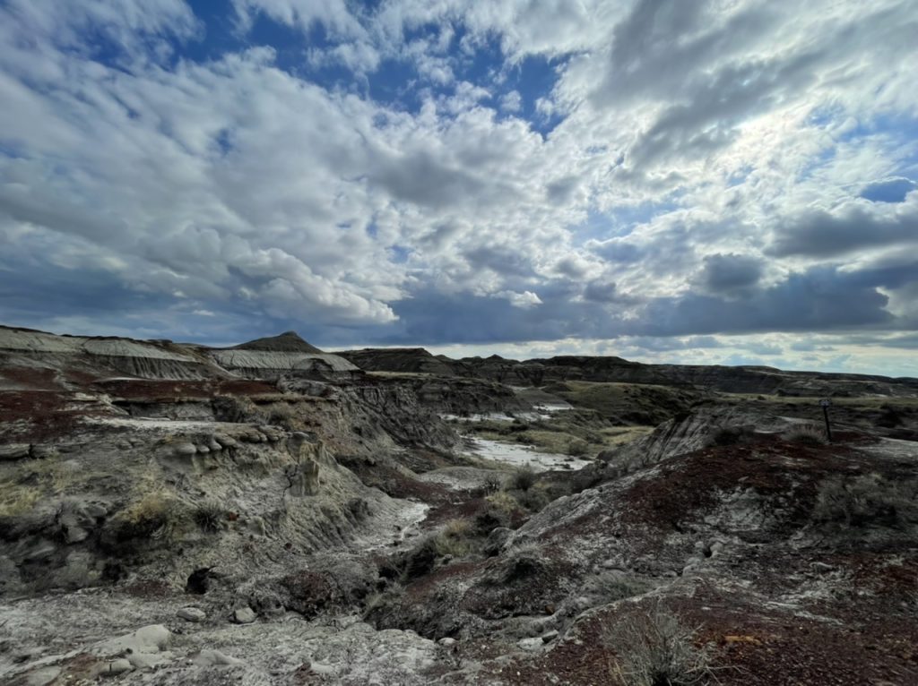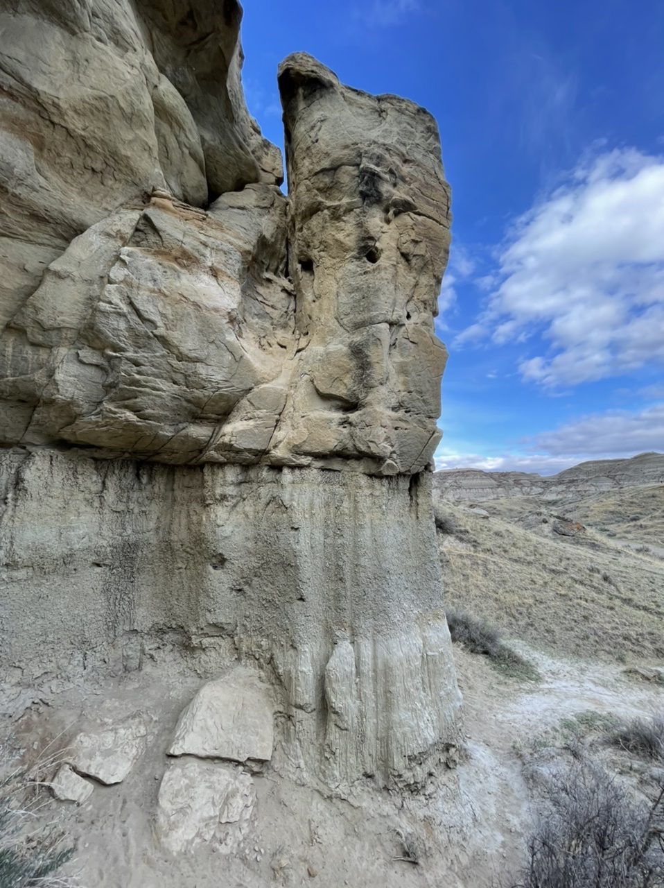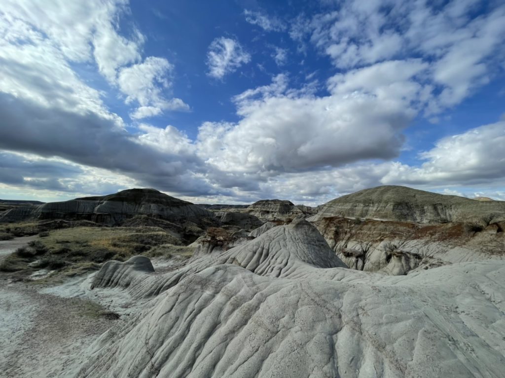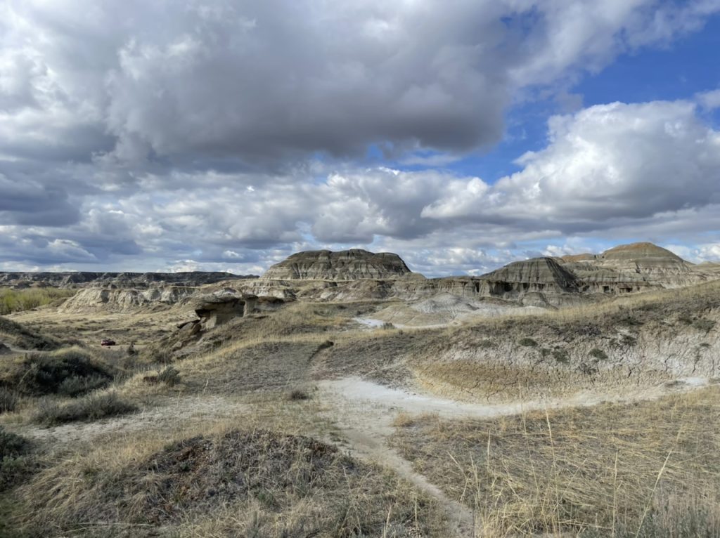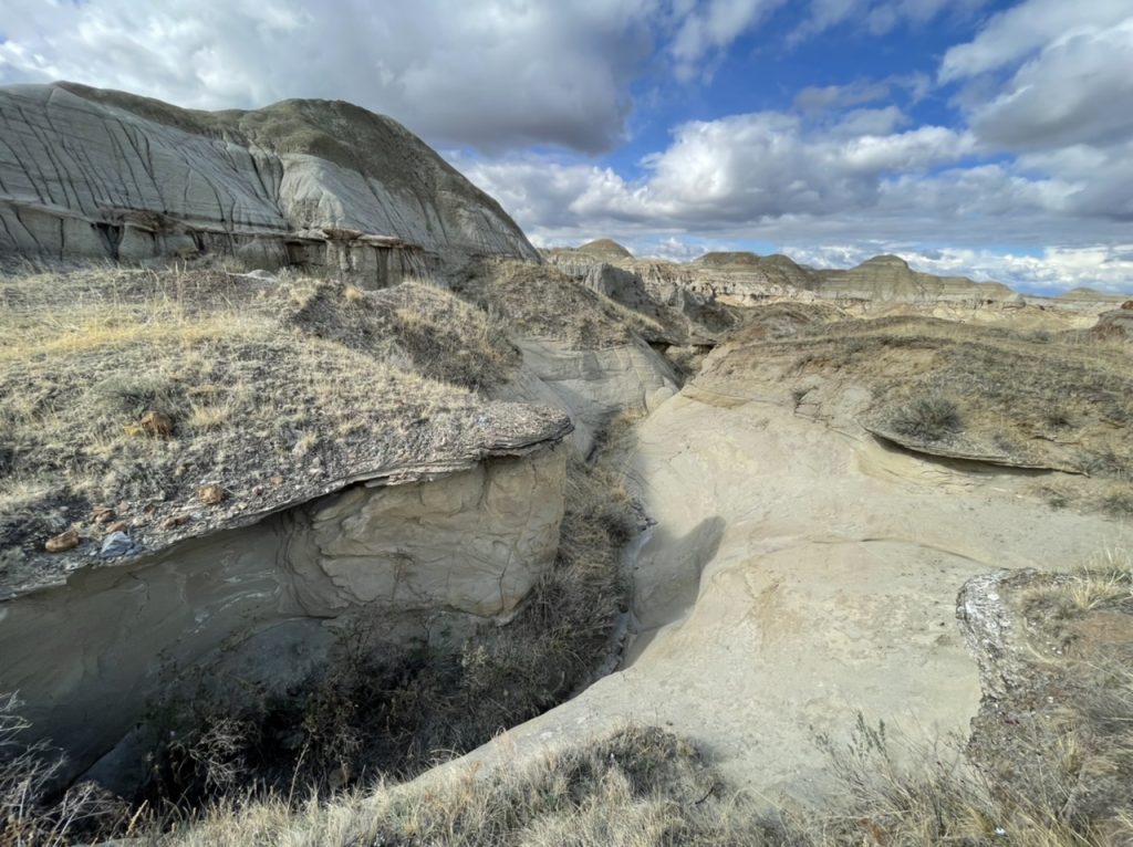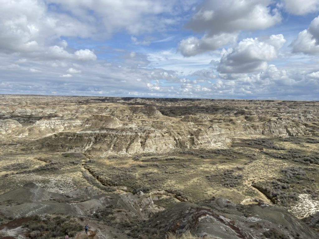 Nach diesem Ausflug haben wir beschlossen Calgary zu verlassen. Wir hatten noch einen weiteren Stop geplant. Den circa 2 Stunden entfernten Dinosaur Provincial Park. Wer hat in diesem Park bei Google gefunden und fanden die Bewertung ganz gut. Aber es war einfach noch viel besser als gedacht. Der Park ist eine der ältesten und größten Ausgrabungsstätten für Dinosaurierknochen und andere Fossilien. Weiterhin gibt es Canyons aus Sandstein. Die Fahrt sollte 2 Stunden und 20 Minuten dauern. 2 Stunden und 15 Minuten davon sind wir nur durch flaches Land gefahren. Plötzlich 5 Minuten davor tat sich eine Canyon Landschaft auf, die wir so nicht erwartet hatten.