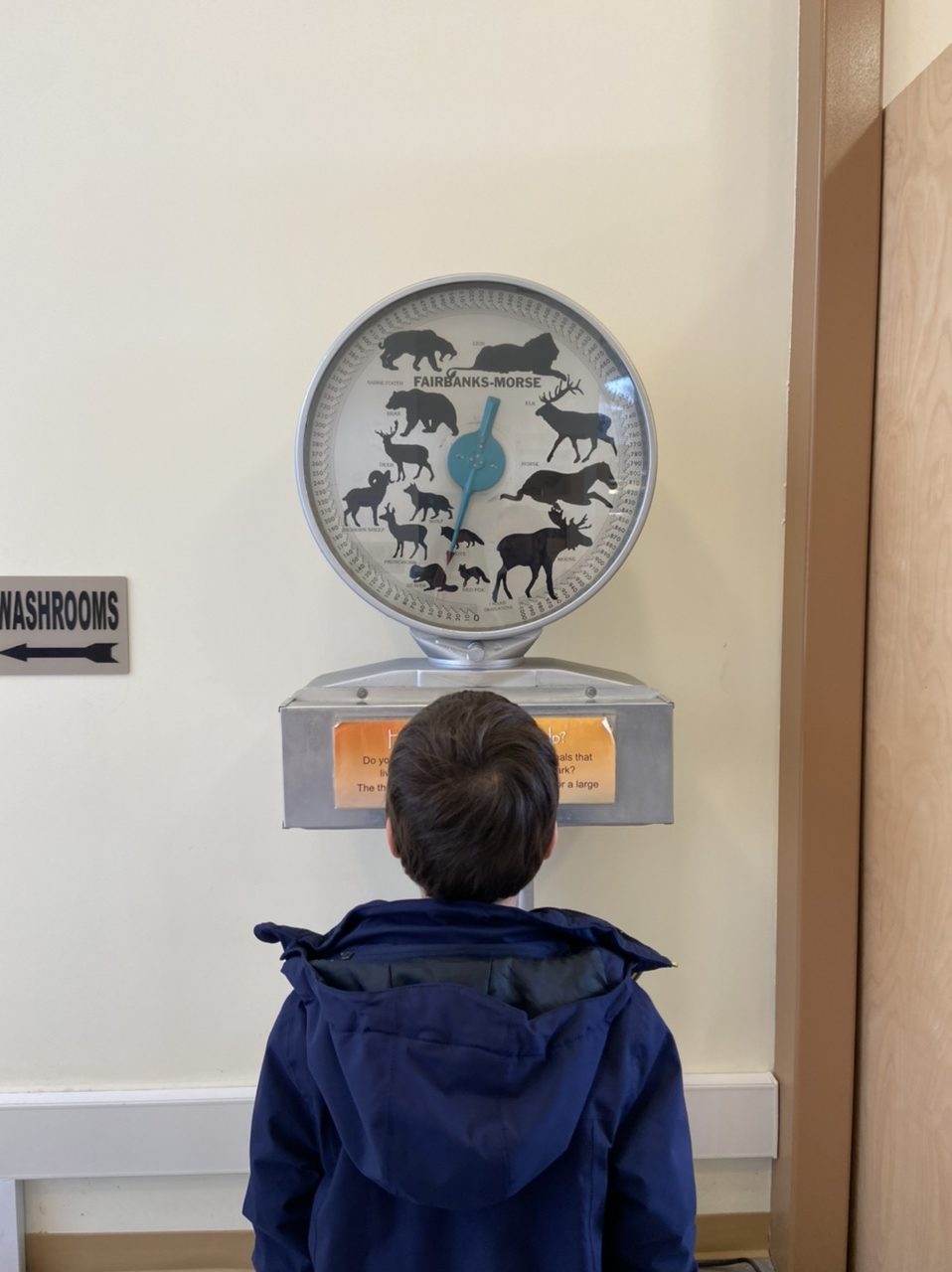 Hier konnte man sich wiegen und nachschauen mit welchem Tier man das gleiche Gewicht hat.