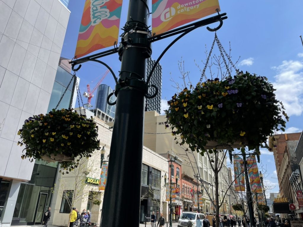 Hier hängen sogar frische Veilchen an den Straßenlaternen.