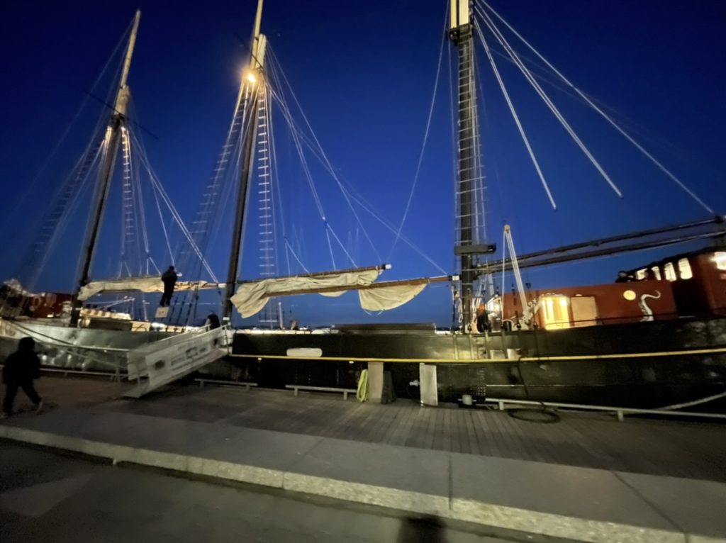 An der Promenade am Wasser wurde leider gerade bebaut. Aber ein paar Schiffe können wir trotzdem sehen.