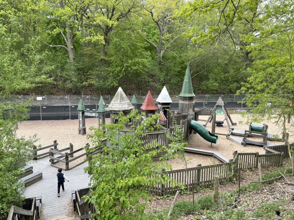 Sudbury War nicht so einladend, das wir hier nicht länger bleiben wollten. Frühstück gab es hier nur bis um neun, wir waren etwas spät da und vieles am Buffet war schon vergriffen. Wir haben aber alle noch etwas gefunden und sind dann direkt nach dem Frühstück in Richtung Toronto losgefahren. Wir wollten die 4 Stunden Fahrt schnell hinter uns bringen um uns noch Toronto anschauen zu können. Tatsächlich habe die Strecke mit nur wenigen kleinen Pausen recht schnell erledigt. Und konnten gegen 16:00 Uhr den High Park in Toronto erreichen. In diesem Park gibt es einen Zoo, viele Blumen, tolle Wanderwege am Fluss entlang, und Spielplätze. Am Zoo konnte man sogar kostenlos parken. Ein paar Meter weiter lag der Jamie Bell Adventure Playground. Das ist ein riesengroßer Holzspielplatz an dem Juli sich richtig austoben konnte.